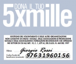 Ecco come sostenere la nostra associazione: mettere la firma nell'apposito riquadro e scrivere sotto il numero della nostra partita Iva. 97631960156, come da facsimile.
